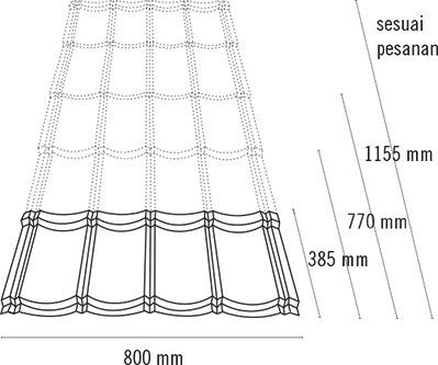 - Jarak reng dan panjang setiap lembar atap dapat dibuat sesuai pesanan.